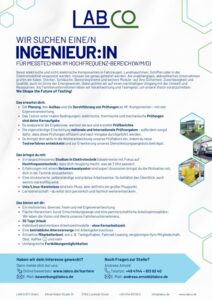 - Du bringst dich aktiv in die Weiterentwicklung unseres Prüflabors ein, indem du neue Testverfahren entwickelst und zur Erweiterung unseres Dienstleistungsangebots beiträgst.
